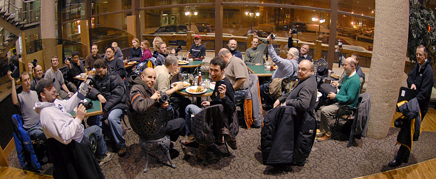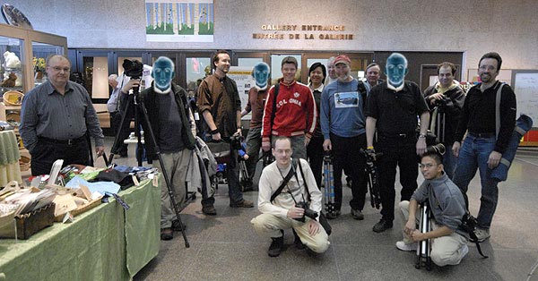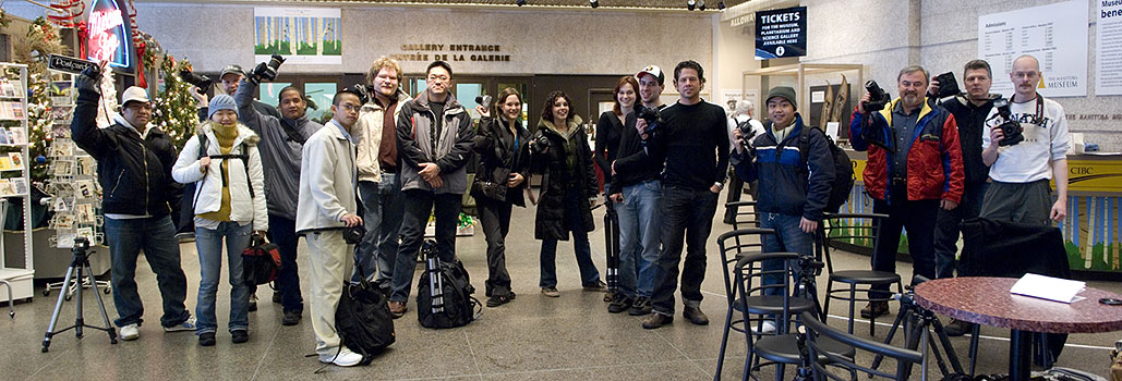 December 31, 2006 The deadline for submissions for the 2007 WPGphoto club calendar has been extended as I know the first deadline was very short. The new deadline is January 7th at 5pm. Hopefully this will allow you more time to submit your photos and help us make a really great calendar which will be available for download as of January 8th. (See December 22nd news item for more details.) December 30, 2006 WPGphoto Studio lighting intro seminar today at 12noon, 448 Hargrave - PrairieView December 25, 2006 Happy holidays and merry Christmas to everyone from WPGphoto! Remember to both drive and shoot safely! December 22, 2006 Hey all, it's time once again for the WPGphoto club calendar! For last year's calendar please see here: 2006 WPGphoto club calendar - 9.5 megs (acrobat required) WPGphoto club calendar 2007 information: -The WPGphoto club calendar is produced by the club in order to have a locally created calendar as well as to give exposure of it's members and to bring more awareness to the club. -All photos are taken by club members and 36 photos are used per year: 1 large photo and 2 smaller ones per month. -The calendar was not printed last year and won't likely be this year however we still ask for commercial release for all the photos because it's always a possibility. -You are allowed to make copies for yourself and even friends but may not distribute them for sale. You may not even charge people for the paper, ink, printing etc. Submissions: PLEASE READ CAREFULLY -First and foremost you retain all rights to your photo(s). You only give WPGphoto the right for a one time commercial usage for the 2007 calendar (including the thumbnail on the web site). In this case, commercial release means that WPGphoto can sell the calendar with your photo in it without compensating you. If the calendar is sold publicly proceeds go to paying for the web site, events and prizes for club meetings. -Photos must be resized to horizontal, 11x8.5 @ 200 DPI (minimum, 300 preferred) in JPF format at about 90% quality (this corresponds to about an 11 out of 12 quality in Photoshop)(no TIFF or other formats please) -Photos should already be processed to the photographer's liking. Any type of retouching is allowed. -You may submit up to 5 photos maximum. -Please include your full name for credit in the calendar. -Send your photos to submissions@wpgphoto.com and include in the text: "I hereby release commercial rights to these photos without compensation for a one time usage in the WPGphoto.com 2007 club calendar." After photos have been submitted with the release and the calendar has been released you may not revoke your release. Submissions without this release will be disregarded. Selection process: -Myself and the other moderators on the forum: Warren, Jay and Dave choose the best submissions that will then appear in the calendar. -Photos of Manitoba are preferred however you may submit any photo from anytime and any location. Finally: -The calendar is put on the WPGphoto.com web site as of January 1, 2007 for free download by anyone. Submissions where slow last year as the club was smaller so I'm looking forward to getting lots this year! Thanks everyone! December 7, 2006 A photo from the WPGphoto - Don's pre-Christmas extravaganza: ![]() (Click to enlarge) HUGE thanks go out to Chris and the staff at Don's Photo Portage for all their help and hospitality (including snacks!). Several members where on hand to chat about gear, general photography and give others tips as well as to buy buy buy: cameras and other accessories as well as several 8x10s and frames where snapped up by members. Also a huge thanks to Lindsay the local Nikon Rep who was at the store to chat to all the Nikon fanatics about new cameras and gear. Lindsay and Tim, the Canon Rep (who sadly couldn't attend) where extremely generous with the free schwag which included several lens wipes, a bunch of coffee mugs, CD holders, lens wipes, pens and more so that every member in attendance walked away with something cool! Thanks to everyone! We're already planning the next one! December 3, 2006 A group photo from the Museum club shoot: (Click to enlarge)