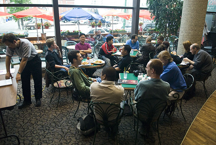 November 22, 2006 ***Four new events have been planned for WPGphoto members in December:*** 1) WPGphoto Manitoba Museum - Science exhibit club shoot - December 2nd, Saturday, 12pm 2) WPGphoto online meeting - December 4th, Monday, 7pm 3) WPGphoto Don's Pre-Christmas gathering - December 7th, Thursday, 7-8pm 4) WPGphoto Studio Lighting seminar - December 30th, Saturday, 12-3pm For availability and more information about these events please see the Events area. November 17, 2006 Don't forget that November 21st, 2006 is our monthly meeting at the standard place and time: 7pm (6pm to join us for dinner) at the Pony Corral Downtown (444 St Mary). This month is an image critique where we are looking for three volunteers to bring photos for critique. If you have an image that you would like help with and would like to bring to be critiqued, please contact Dan or see the Events area on the forum. November 1, 2006 Thanks to everyone who came out to the October monthly meeting, despite having to brave a snowstorm. Although a smaller turn out due to weather all the mods made it as well as a couple of new girls. Thanks for all the suggestions from everyone, hopefully we'll have time to implement them all. Here is a shot from the meeting: