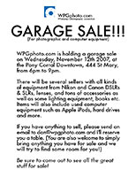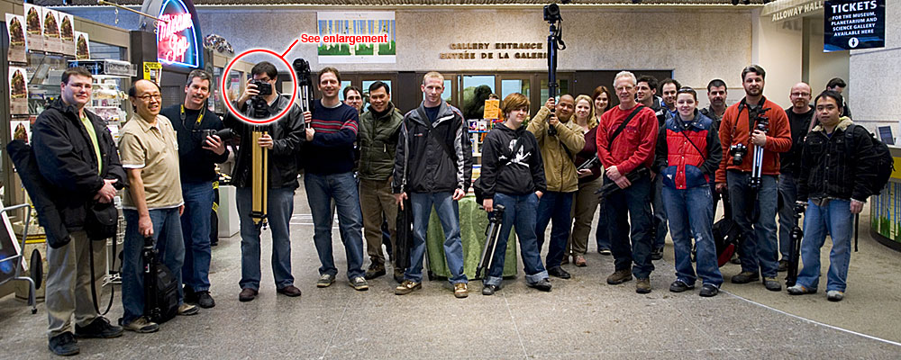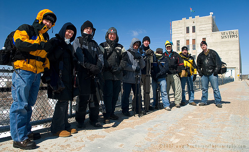 December 25, 2007 Happy holidays and merry Christmas to all our members and friends! Don't forget your camera for all those holiday events! December 12, 2007 The WPGphoto garage sale was a huge success! Thanks to all who where in attendance to sell and buy. Due to the success of this event we are looking at holding another one closer to the spring. Stay tuned! A photo from the garage sale: (Sadly I was so busy most of the night I couldn't photograph it at the busiest time) ![]() Click for a larger image December 5, 2007 Don't forget that Wednesday, December 12th is our garage sale! The following is a flier for the event, feel free to download the PDF file by clicking on the image below) and printing and posting it anywhere you think people will be interested. ![]() Click for printable PDF file. November 23, 2007 This just in: Club t-shirts will be ready and available at the WPGphoto movie night meeting, Nov 26, 2007. See the Events page for location and more details. November 22, 2007 A new event has just been added to our December roster: WPGphoto appreciation night @ Don's Photo Portage Due to our great relationship with Don's Photo we've been invited to an appreciation night with them on December 7th from 6-8pm, Portage location. This is a chance to test out any lenses you've been thinking about buying (or just drooling over) and have some new products demoed (like the new VisibleDust sensor loupe!). The Nikon rep has already been confirmed and other reps may also attend. It's also another chance just to chat with other members and have a relaxed fun time surrounded by photography equipment. As always newcomers are very welcome to attend. So come one, come all to the Don's Photo - WPGphoto appreciation night! November 13, 2007 Thanks to all who attended especially all our new members. Here is a photo from the club meeting tonight: ![]() Click for a larger version November 8, 2007 WPGphoto shirts are now available for pre-orders. Shirts will be black with the logo on front and the slogan on the back. Shirts cost $20 and are available in multiple sizes. Please e-mail me at dan@wpgphoto.com with your sizing if you would like to order a shirt. ![]() Click image for much larger version November 6, 2007 Don't forget that this Friday we have been invited to the Grand Opening of the new Don's Location in St. Vital. Check the Events page for more details. November 5, 2007 We are now accepting submissions for our annual club calendar! Each year WPGphoto brings out it's club calendar in order to showcase it's member's work and to promote the club. Details for the 2008 calendar: -Photos must be horizontal format at 8.5"x11" @ 300DPI to be considered for the calendar. Web sized images will not be accepted. -You may enter up to three photos maximum per photographer -All photos must have been taken in Manitoba -You must include your full name (first & last) and the location the photograph was taken (example, Steep Rock, Manitoba or St Boniface Cathedral, Winnipeg) -This isn't really a contest however several volunteers will be used to judge the general aesthetics and image quality of each photo and then prioritized for entry into the calendar so it technically runs the same as a contest. -No copyrights are allowed directly on the photos (they will be added after as part of the design) -Submit full resolution photos only to submissions@wpgphoto.com -In your e-mail you must include the following: "I _____ hereby allow WPGphoto to use any of the following photos in their 2008 club calendar. I understand that the calendar may be sold, that I keep all rights to my own photos, that they may be modified to fit the needs of the calendar and that the only compensation that I will receive is a photo credit." -Final date for entries is December 2, 2007 Legal: By submitting photos for the 2008 WPGphoto club calendar the photographer: -Must acknowledge that he/she alone took the photos and has full rights to submit them -By submitting, still retains all rights to their photos but simply allows WPGphoto to use and publish any of the submitted images in the calendar (which can be sold) and on the Web (pertaining only to the calendar) with the only compensation being a photo credit. Just FYI the calendar is housed in the Goodies section of the web site. October 9, 2007 A photo from the club meeting: ![]() Click for a larger version October 3, 2007 A photo from the Fort Whyte club shoot: ![]() Click for a larger version October 2, 2007 Reminder: Wednesday October 3rd and Thursday the 4th WPGphoto is meeting up at Fort Whyte Alive to shoot the fall migration. Please see the events page for more details. September 24, 2007 Don't forget that tonight is the WPGphoto movie night #1. The movie has been chosen by online vote on the forum and tonight's movie is "War Photographer". Please see the events page of the web site or forum for more details including time and location. September 11, 2007 A photo from tonight's meeting: ![]() Click for a larger version September 10, 2007 Please see the events section of the web site or forum for several newly posted upcoming events. August 18, 2007 Despite weak conditions for starscapes we still ended up with 13 hardcore members for the Grand Beach event. Thanks to everyone who attended! Here is a group photo from the event: ![]() (Click to enlarge) August 18, 2007 The club sunset and starscape shoot for tonight is ON! Although it is partially cloudy in the Grand Beach area the satellite shows that it may clear later on. Even if it is still cloudy tonight we will do some painting with light. We will be meeting at 6:30pm at the St Boniface Cathedral on Rue de la Cathedrale. Look for all the people with cameras. Hope to see everyone there! August 18, 2007 Don't forget that tonight is our second annual starscape shoot at Grand Beach. Check your e-mail if you are on the contact list for details. August 14, 2007 A photo from the club meeting: ![]() Click for a larger version August 2, 200