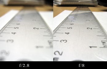 The pictureon the left, taken at f/2.8 has only about an inch worth